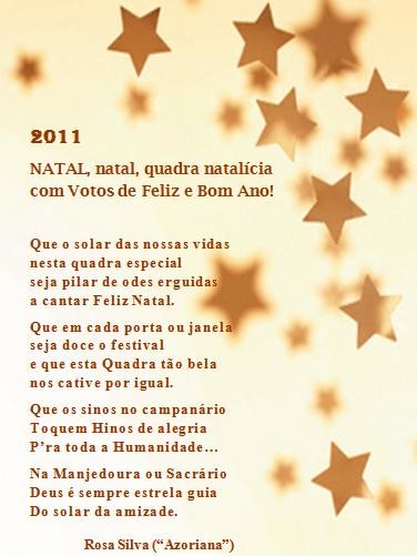 O pai natal, que este ano até tinha a saca murcha de prendas, deixou ficar as barbas que se prenderam ao rosto do dia que alastra em Angra e, quiçá, arredores e mais além (diga-se um nevoeiro atroz que nem se vê um boi à frente). No além é que anda toda a gente porque as conversas trazem sempre um “Valha-nos Deus!” e, já agora, a santa Engrácia. Pena que as carteiras estejam a abarrotar de sonhos e vazias de realidades. Eu que o diga. E até que não me devia queixar, ou melhor, já me queixo desde que saí das saias da mãe e dos berros do pai perante coisas que não lhe enquadravam, na sua maneira de ver e de criação. Hoje não há nem maneiras nem criação que aguentem o que por aí vai ou vem. Não vale a pena é muitos queixumes porque o acordo ortográfico veio para os tirar. Quanto menos “se” (s) e “c” (s) houverem melhor. Contentemo-nos ou deitemos as barbas de molho, para quem as têm em boa medida, ou, ainda, rezemos para não se levantar uma revolução com arrotos de desespero. [Faço um aparte para revelar que não me apetece mudar de parágrafo. Se é para poupar que se poupe também nas linhas de escrita, no paleio, e, sobretudo, no papel. Nada melhor do que ligar um botão, acender um monitor, tocar numas teclas e deixar rolar o que a mente soltar…]. Mas, adiante que a hora de virar o texto já se aproxima bem como o viragem de ano. Dou-vos um conselho gratuito: Aproveitem, tal como eu costumo ser adepta, para deixar o ano arrumado, limpo, sem migalhas, roupa ou chinelos pelos cantos. Levantem a moral e pensamento positivo. Dêem-se graças pela saúde, pela paz, pela alegria, pelo amor e pela sã irmandade. Supliquem pelos doentes, pelos famintos e pelos desalojados do ser e do ter. Abracem o cônjuge, o amigo, o pai, a mãe, o irmão. Mimem o gato, o cão, o pássaro enjaulado, o porquinho-da-Índia, o periquito. Reguem a planta sequiosa por um carinho e um sorriso. Aparem a relva do queixume diário. Limpem a alma da desgraça e deem um pão a quem dele necessita para sobreviver. Lembrem-se que pior que nós está o outro, que tem de levantar cedo e seguir por caminhos e ruelas para tirar o leite à pobre da mimosa, digo a Vaca, açoriana. Que não nos falte o leite, o queijo, a manteiga e o fabuloso iogurte da tal Vaquinha simpática e acolhedora. Ao menos que esta seja a produção açoriana/ilhoa que agrada a gregos e troianos. Por este andar ainda apanho um raspanete por escrever nomes que não deviam vir à flor da tecla. Que não faltem é flores nos canteiros da vida. Que não faltem as rimas do amor. Que abunde a Vida! Desejo a todos, sem exceção, um virar de ano brilhante, abundante de ser e que o Novo Ano de 2012 sorria. Nascemos com pouco e contentemo-nos com «os poucos essenciais» para um dia de cada vez. Beijos e abraços: “à tout le monde”, “to all of you”, para TODOS… TODOS!