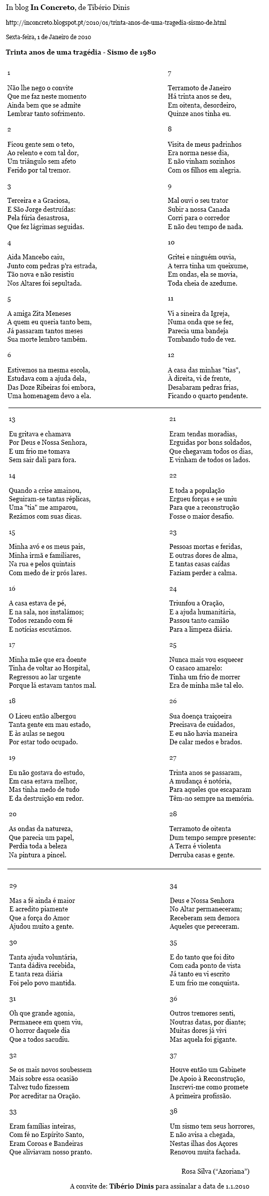 P.S. Após a divulgação destes versos chegou-me ao conhecimento um comentário pertinente e muito bem construído de acordo com a atualidade automobilista na ilha Terceira (e quem sabe noutras ilhas do arquipélago dos Açores). Ei-lo transcrito na íntegra sem colocar o nome do autor que gosta de anonimato:
